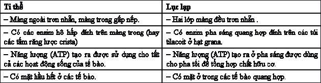 Phân biệt cấu tạo và chức năng của ti thể và lục lạp?