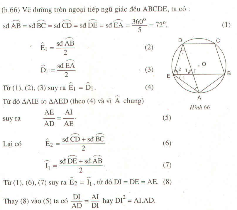 Hướng dẫn : Vẽ đường tròn ngoại tiếp ngũ giác đều ABCDE rồi xét hai tam giác đồng dạng AIE và AED