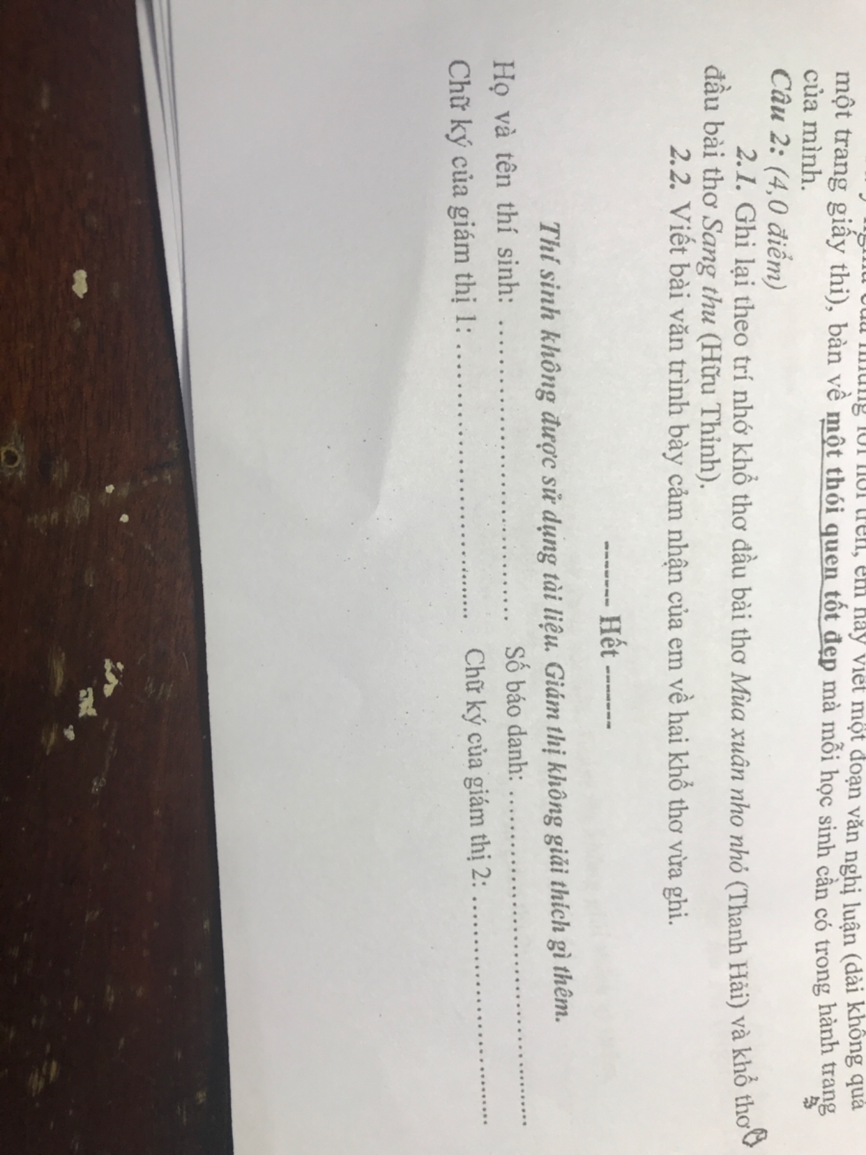 Cảm nhận của em về 2 khỗ thơ sau. Ta làm con chim hót........ Dù là tuổi hai mươi. Dù là khi tóc bạc.