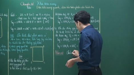 Bài giảng tiếp tục hướng dẫn các em cách tính diện tích xung quanh và diện tích toàn phần của hình trụ bằng việc đi tìm chiều cao h và bán kính đáy cùng một số bài tập liên quan00:27:18 613 TS Phạm Sỹ Nam