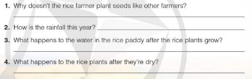 3. Thông tin: “Mr. Nguyen says that rice needs a lot of water and sunshine, and that Vietnam has a tropical climate that is ideal for growing rice’’