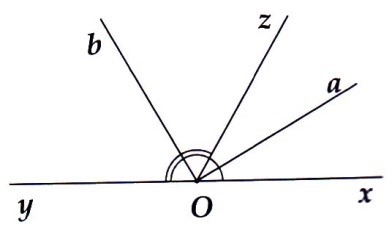 b) Vẽ Oa và Ob lần lượt là tia phân giác của các góc \(\widehat {xOz}\), \(\widehat {yOz}\). Chứng minh đường thẳng chứa tia Oa và đường thẳng chứa tia Ob vuông góc với nhau.