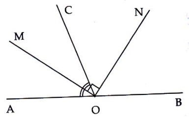 1B. Cho hai góc kề bù \(\widehat {AOC}\) và \(\widehat {COB}\). Gọi OM là tia phân giác của \(\widehat {AOC}\). Kẻ tia ON vuông góc với OM (tia ON nằm trong góc BOC). Tia ON là phân giác của góc nào? Vì sao?