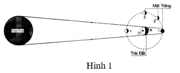 Câu 5: Mặt Trăng ở vị trí nào trong hình 1 thì người đứng ở điểm A trên Trái Đất nhìn thấy nguyệt thực?