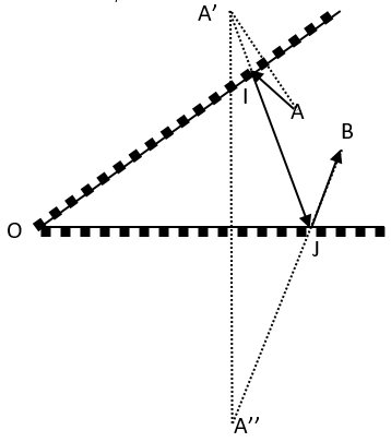 Tia phản xạ từ I qua (M) phải có đường kéo dài đi qua A’. Để tia phản xạ qua (N) ở J đi qua điểm B thì tia tới tại J phải có đường kéo dài đi qua B’. Từ đó trong cả hai trường hợp của ta có cách vẽ sau: