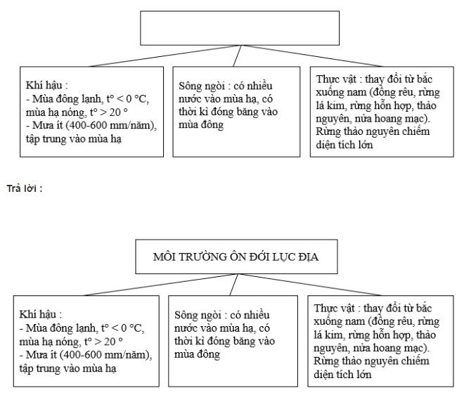 Câu 9: Môi trường ôn đới lục địa có đặc điểm