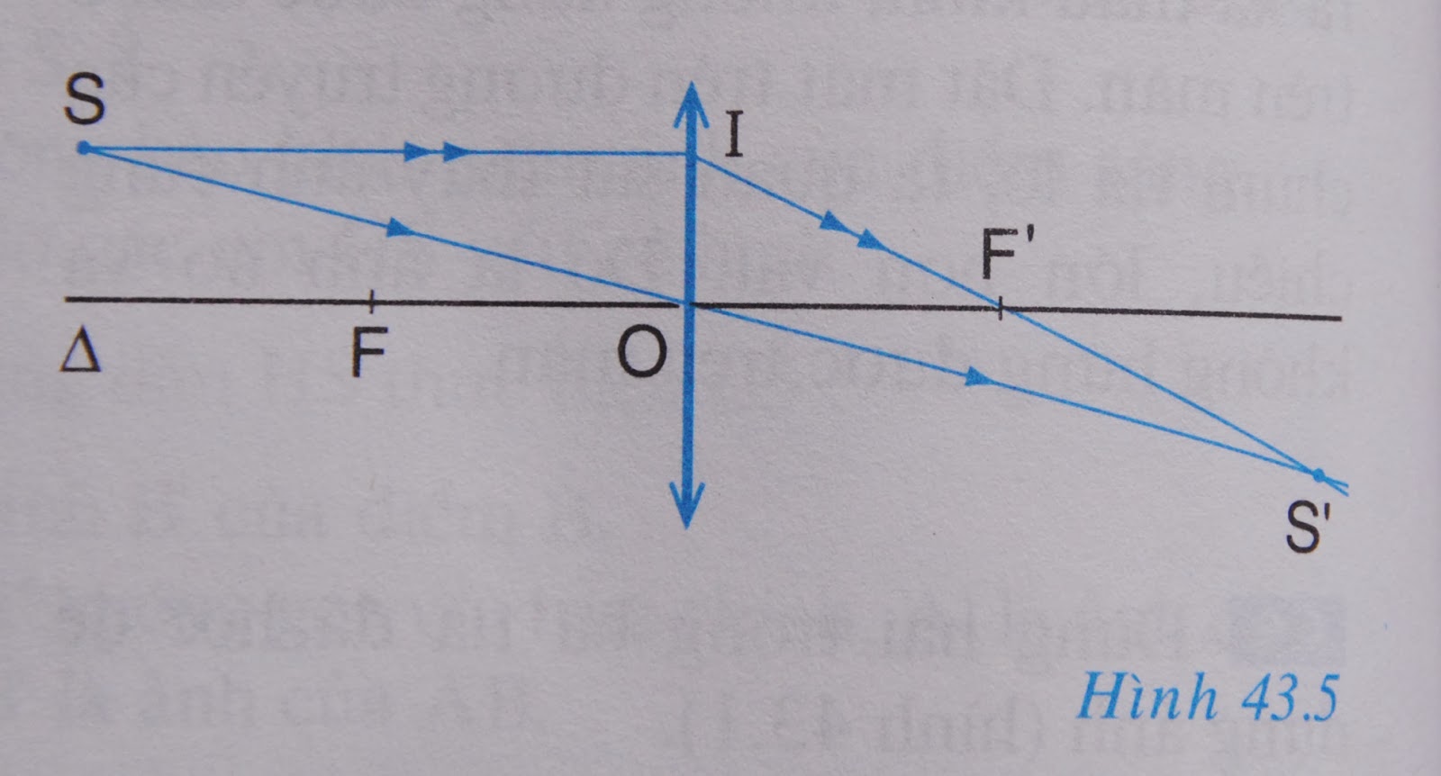 Nếu hai tia ló cắt nhau thì giao điểm cắt nhau đó chính là ảnh thật S’ của S, nếu đường kéo dài của hai tia ló cắt nhau thì giao điểm cắt nhau đó là chính là ảnh ảo S’ của S qua thấu kính.